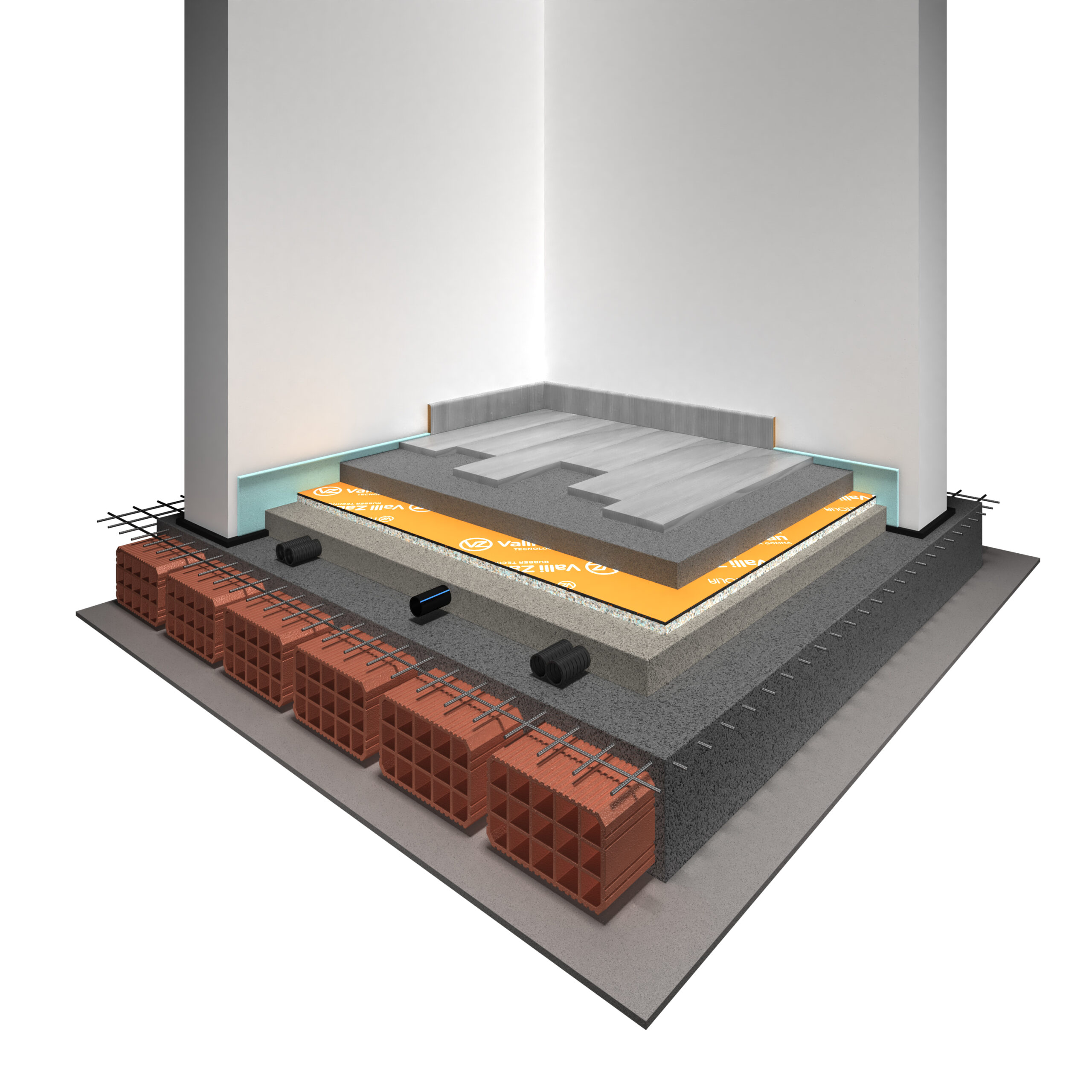Viene utilizzato efficacemente su tutti i tipi di solaio, sopra al massetto alleggerito di livellamento impianti.