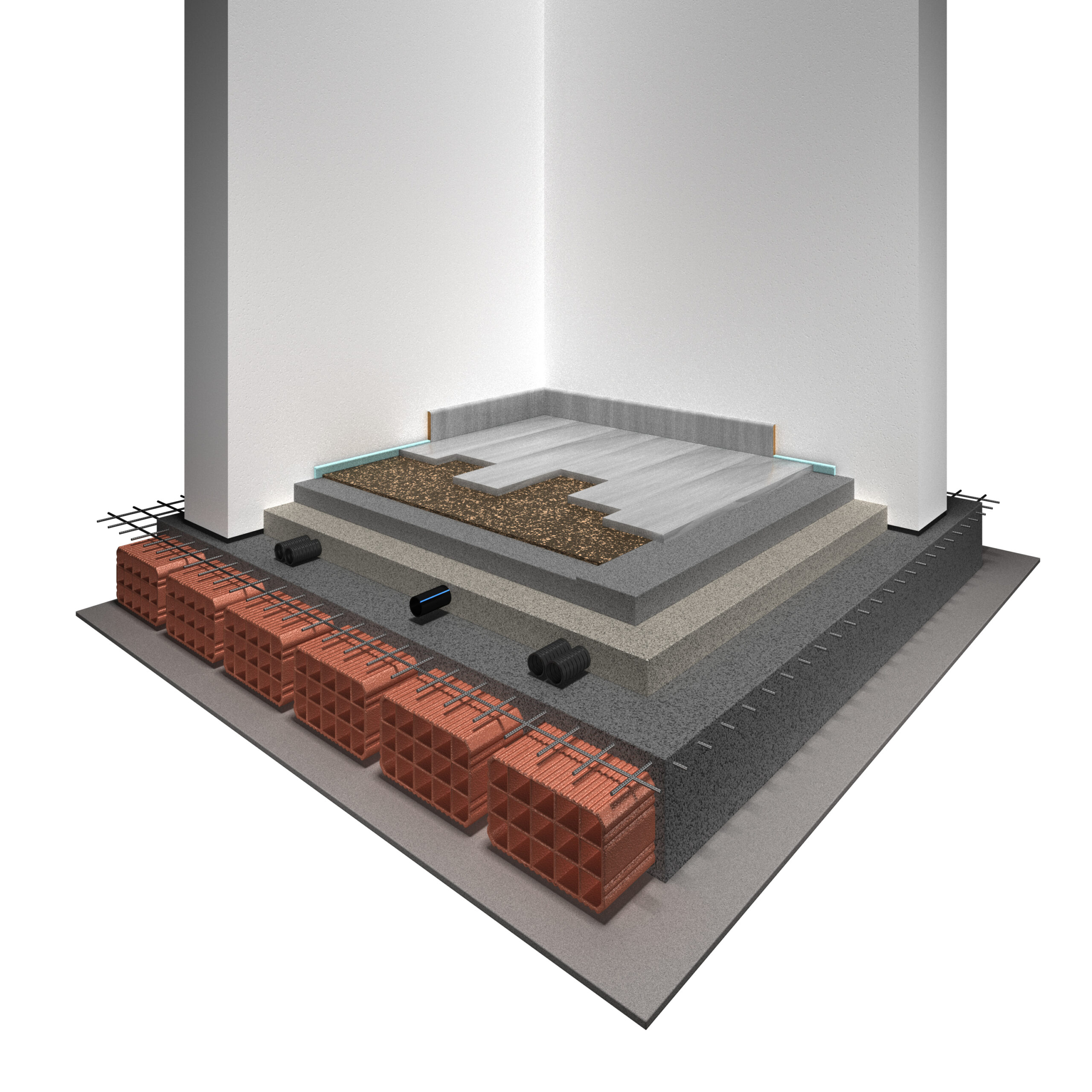 NOVAFLEX AESOUND è impiegato come materassino elasticoresiliente di disaccoppiamento nella realizzazione di pavimenti galleggianti direttamente sotto rivestimento